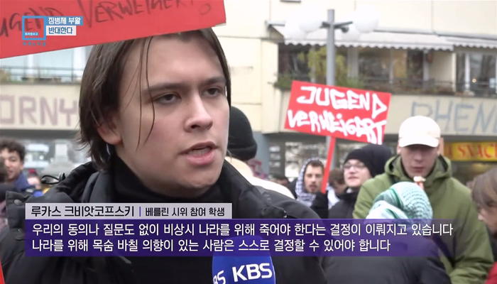 그럼 방법이 있음. 징병 거부를 허용은 하되 거부한 사람들은 폴란드 국경 인근으로 강제로 이주시키면 됨. 군대 안 가겠다고? 그럼 전쟁 났을때 가장 먼저 피해볼 곳에서 살아 뒤에서 꿀빨지 말고