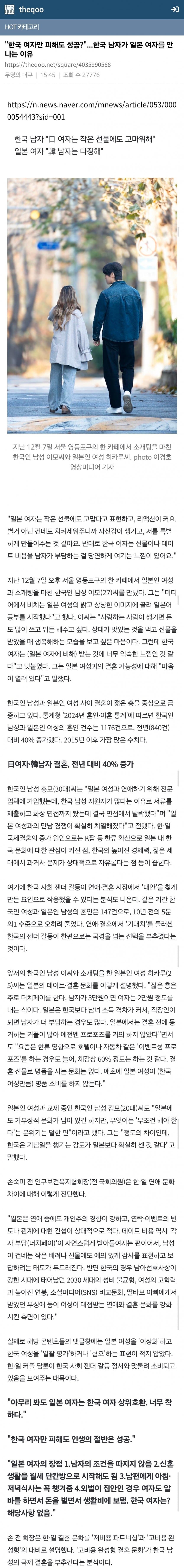 지랄그만하고 서로 갈길 가면되지 뭘 염탐하냐어자피 남녀관계 지금 2030 세대는 조졋으니 각자 알아서 살면되
