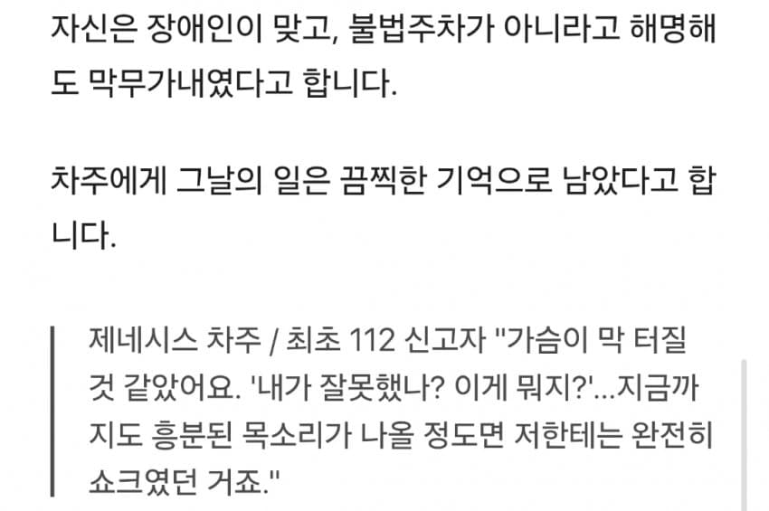 "장애인스티커 불법사용한 사람 신고하려는데 경찰이 오더니 니가뭔데 이런짓 하냐 이런행동 할권리있냐!! 하면서 오히려 나보고 화내더라"