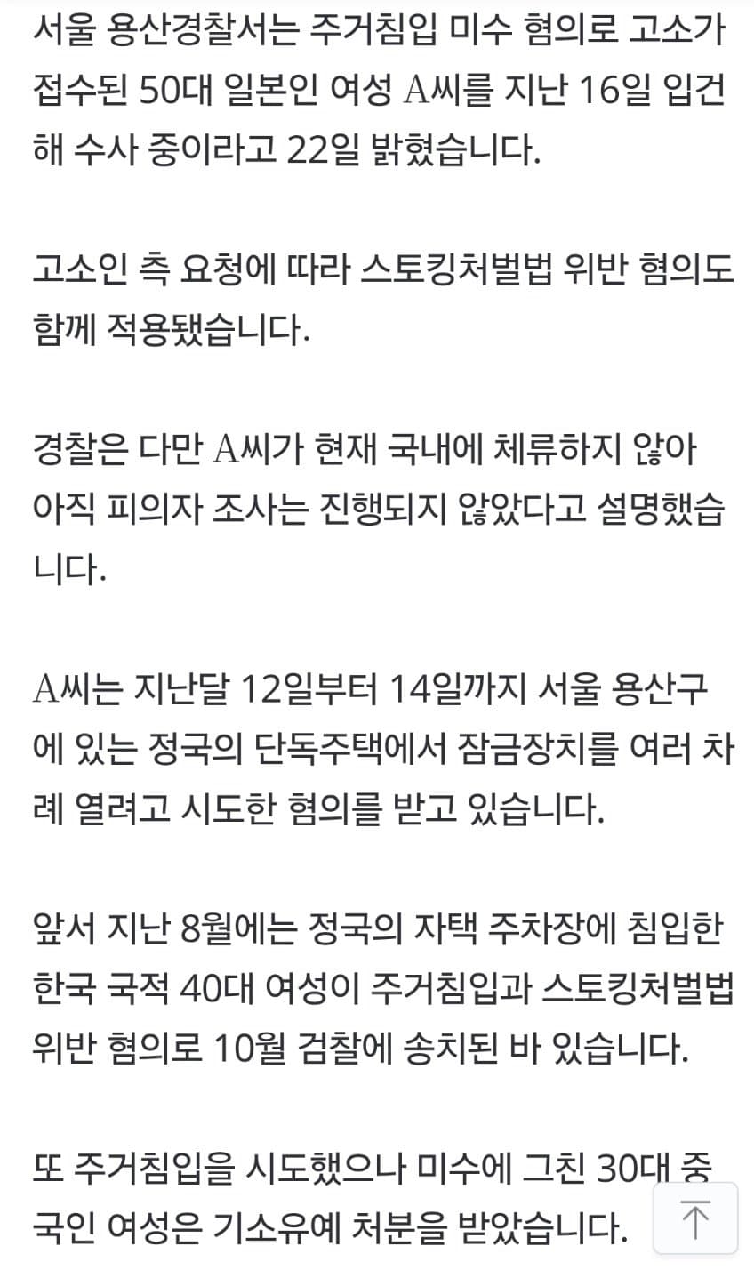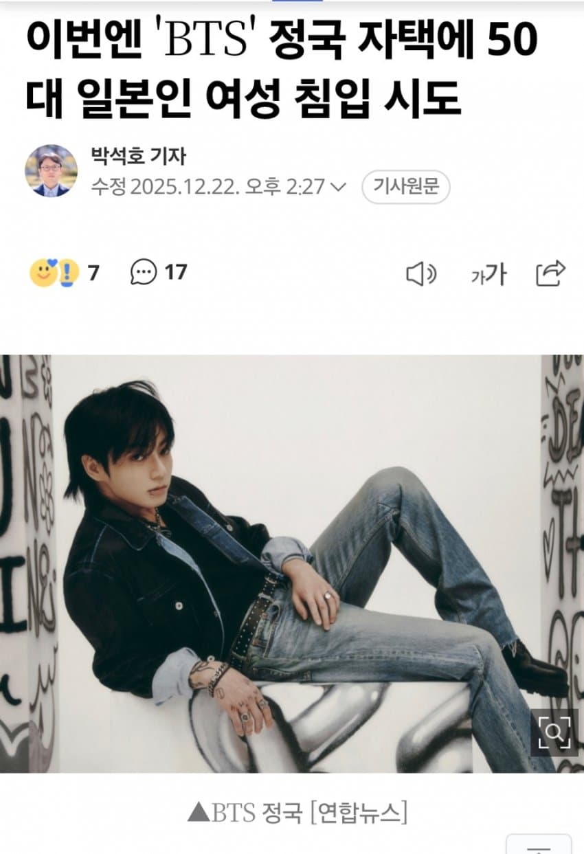 BTS 정국 자택에 50대 일본인 여성 침입 시도