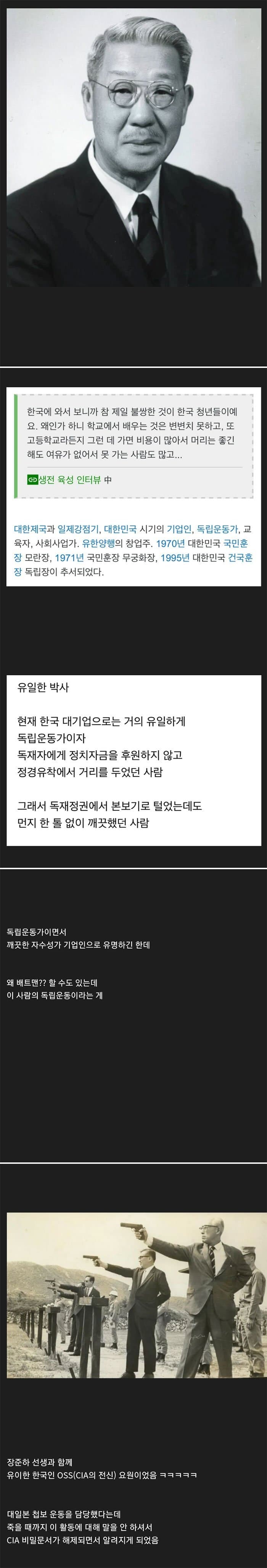 한사람 인생이 독립운동 + 대기업회장이라니 역시 유일한 존재