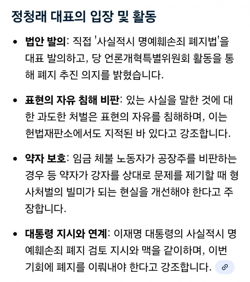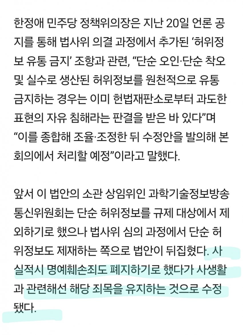 우리나라 사람들이 법률에 얼마나 무지하냐하면 사실적시명예훼손은 가해자를 지키는 법이 아니라 피해자도 지키는법인걸 모름 예를들어 대학이나 취업을한 싱붕이에게 "야 싱붕이 초딩때 빵셔틀하던 찐따였대"소문을 내거나 성범죄피해를 입고 수년이 지난후 조용히 지내던 피해자에게 "쟤 옛날에 그알에 나왔던 그 성폭행사건 피해자래" 수근수근 소문이 나는걸 막는 순기능도 있다