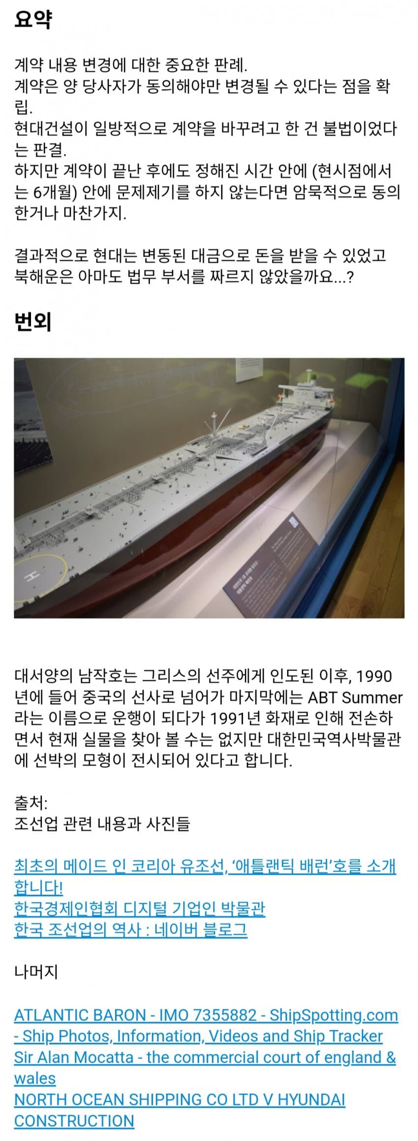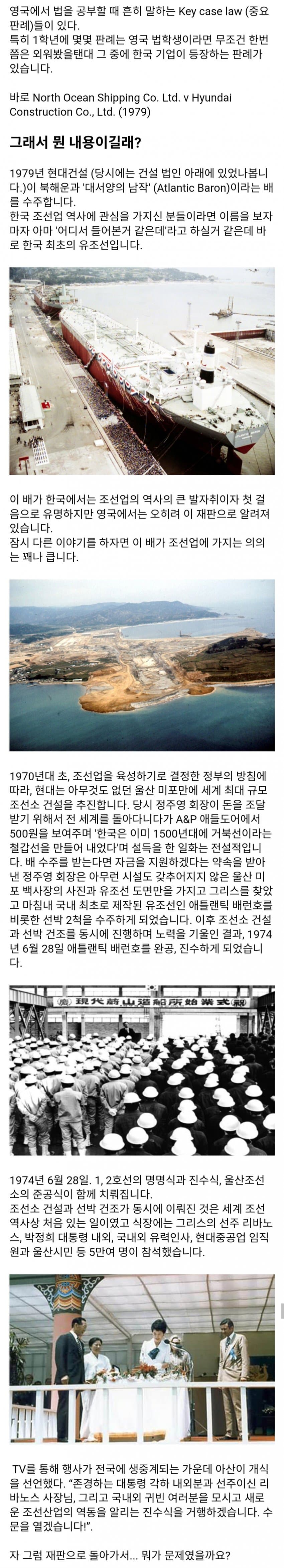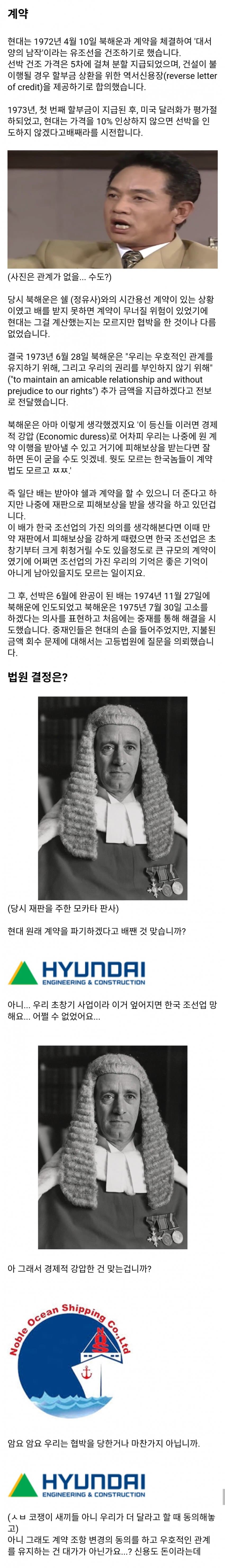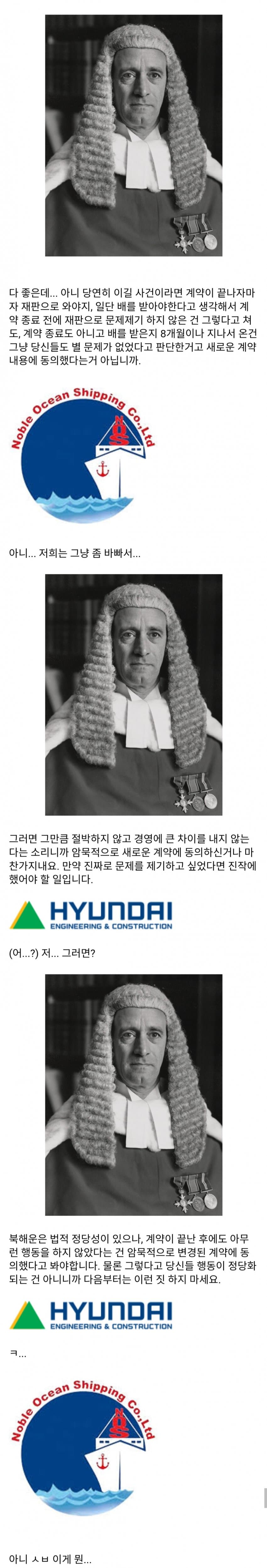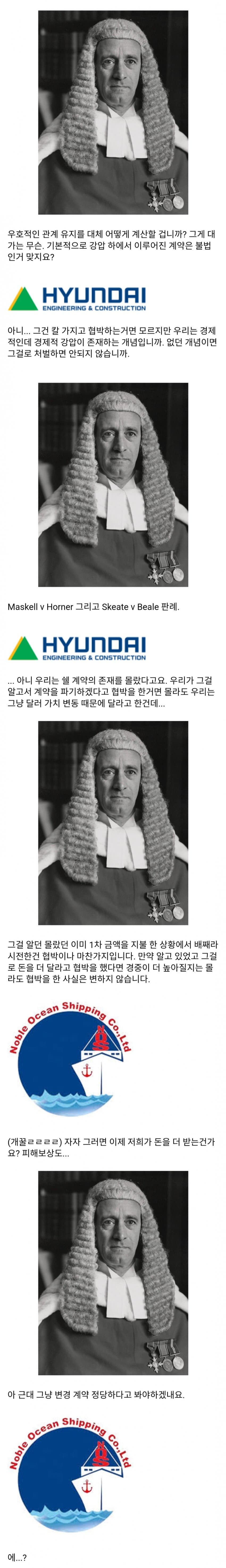 영국회사가 배 주문 한거 현대가 가격 올려받음영국회사가 억울하다고 소송걸었는데 니들도 동의한거나 마찬가지라는 판결