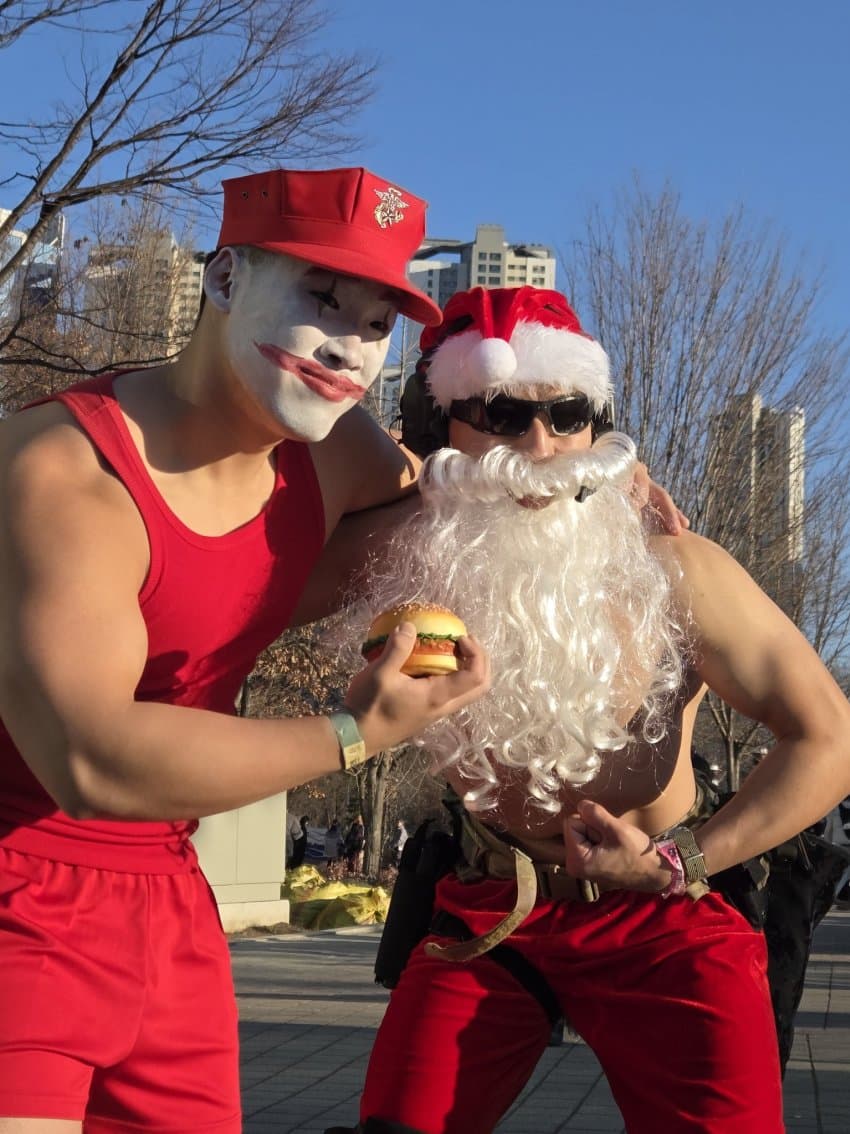 캬 개지리는 산타계란햄,, 저때 나도 개추웠는데 이 형님은 얼마나 추웠을까 흑흑..