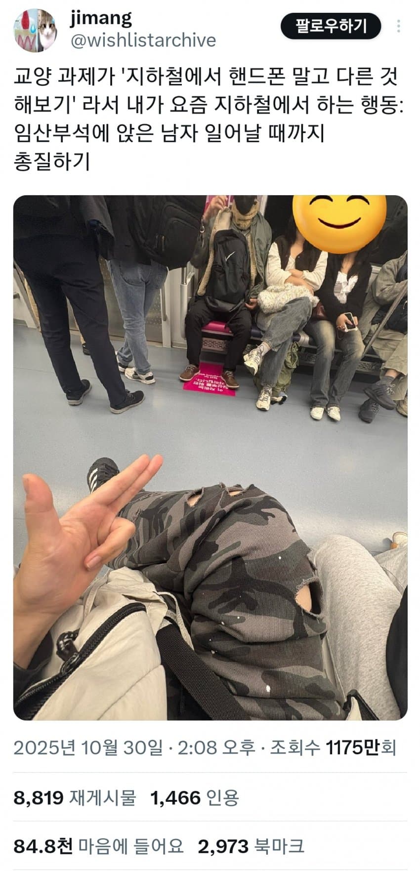 지하철 오조오억년 타는 동안 저 자리에 아줌마 말고 앉은 사람 한번도 못봄