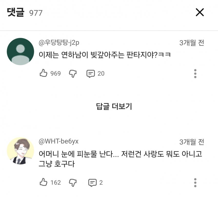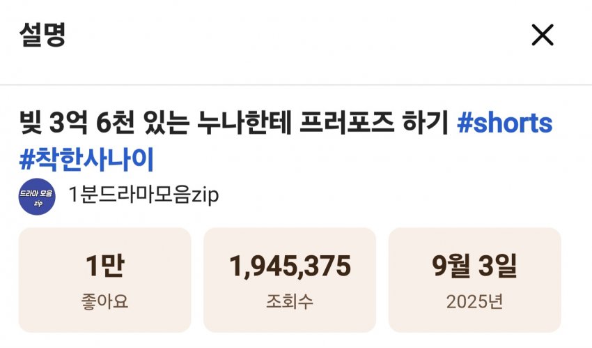 해당 드라마 영상은 조회수 200만에 댓글 1000개 달성함