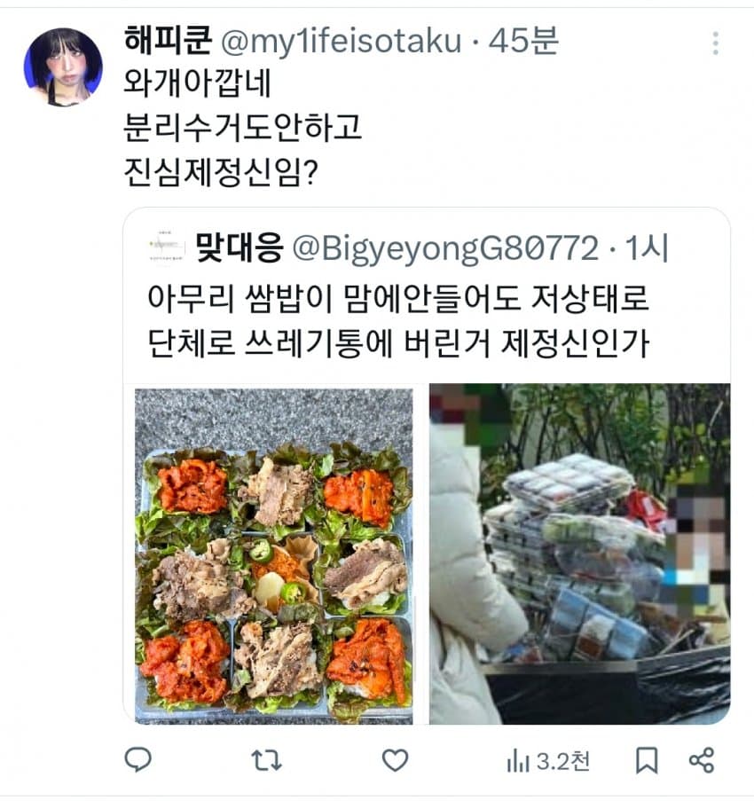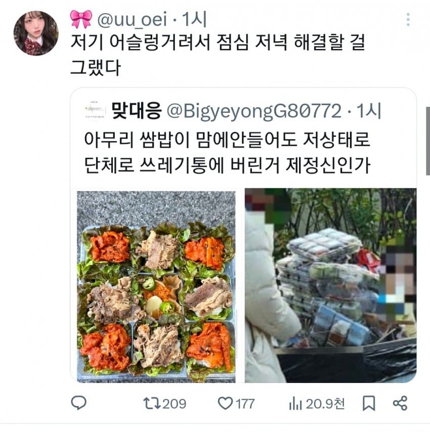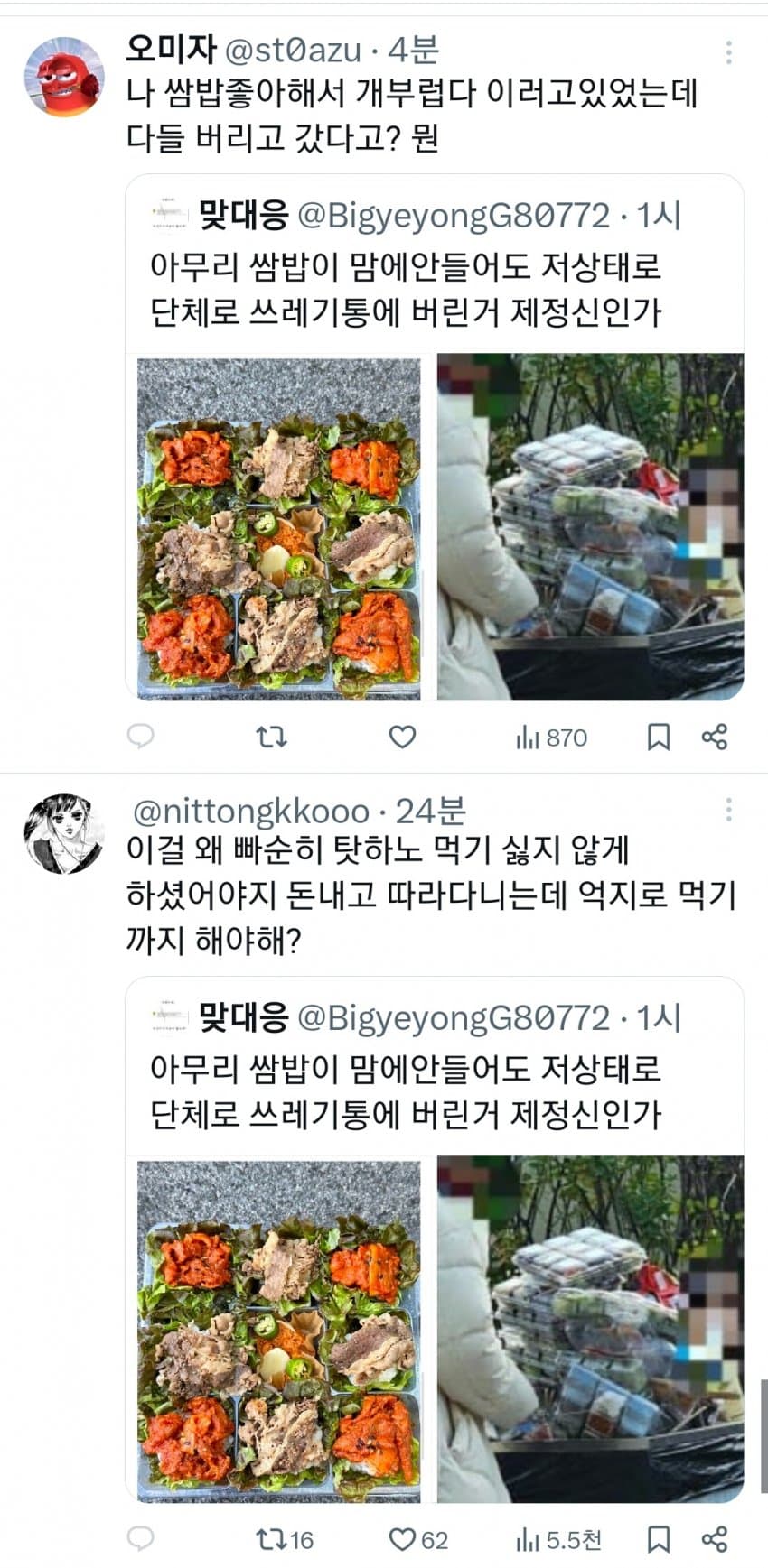 그래서 버린 이유가 먼데? 진짜 단ㄴ순히 쌈밥이라 버린거냐????