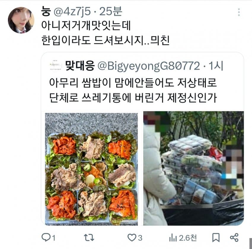 그렇겠지~ 매일 마라탕후루 허버허버 쳐먹어야하는 미친년들한테 쌈밥 얼마나 건강식이야