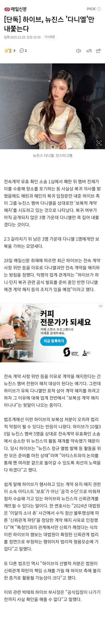 [단독] 하이브, 뉴진스 '다니엘'만 내쫓는다
