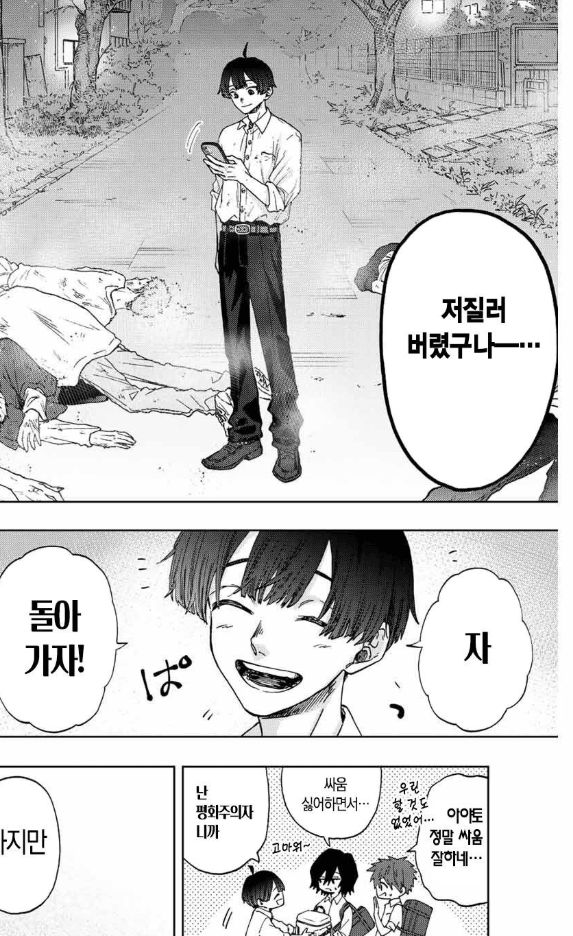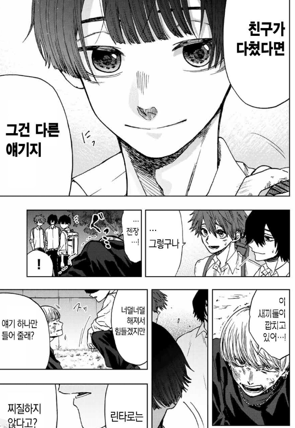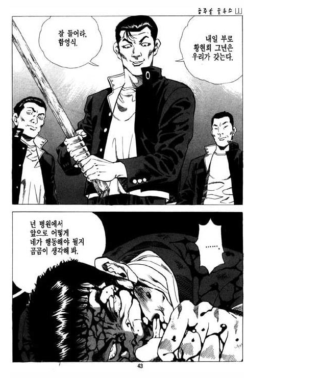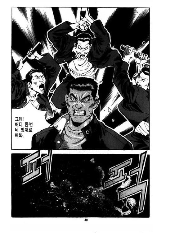 김성모 만화로 비교는 좀 그렇긴 한데 남자작가가 패싸움 그리면 주인공이 이겨도 여기저기 맞아서 멍든 표현을 하긴 함