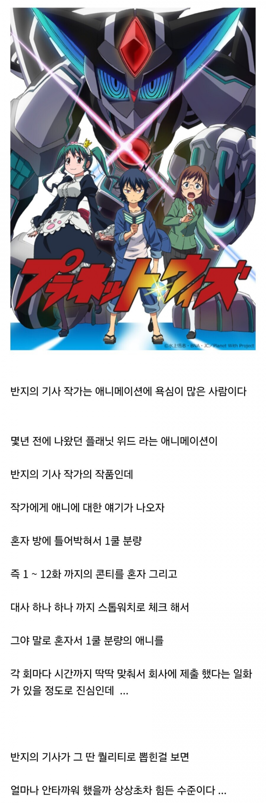 애니 망한건 맨 위의 반지의 기사고 이게 작가 만화를 원작으로 한거맨 아래 초딩이 주인공인건 작가가 원안을 담당했던거고 이건 적당히 호평이었음