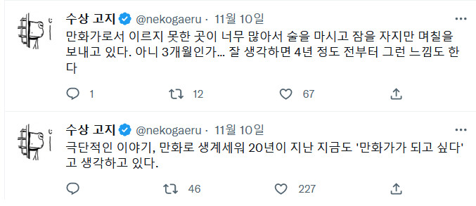누구 전작이라고 소개 들었던게 생각나서 작가 찾아보니까 그 1년에 네번 연재하는데 그마저도 휴재하는 걔네