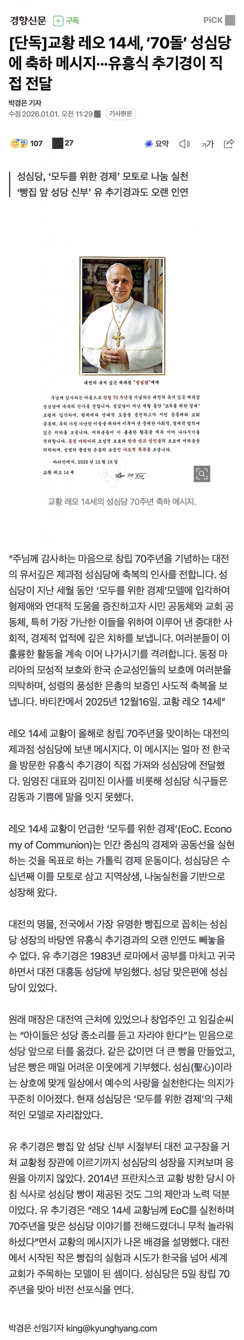 유홍식추기경이 해달라고 했네 ㅋㅋㅋㅋㅋㅋㅋㅋㅋ레오 교황은 성심당의 존재도 몰랐을걸