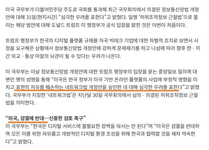 SNS 검열해서 반미 성향 있으면 출입국 제한할 수 있는 미국 이민 및 국적법(INA)은 괜찮고우리나라 정통망법은 안된다는건 내로남불 같은데