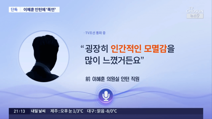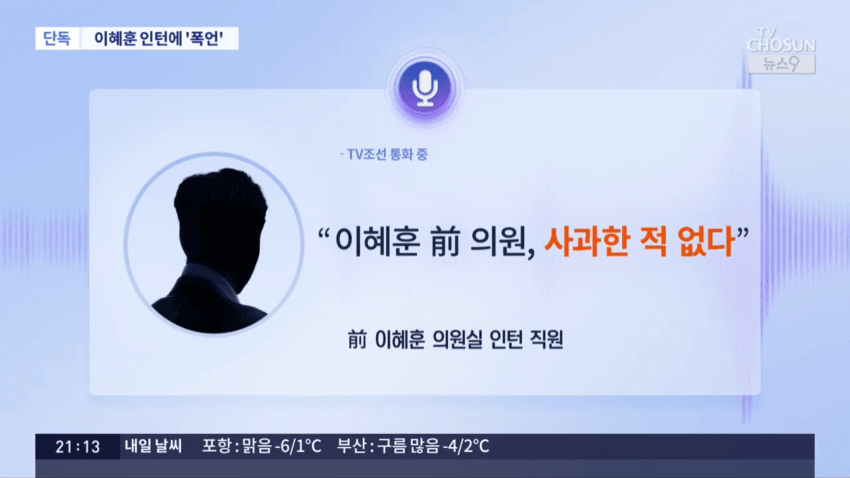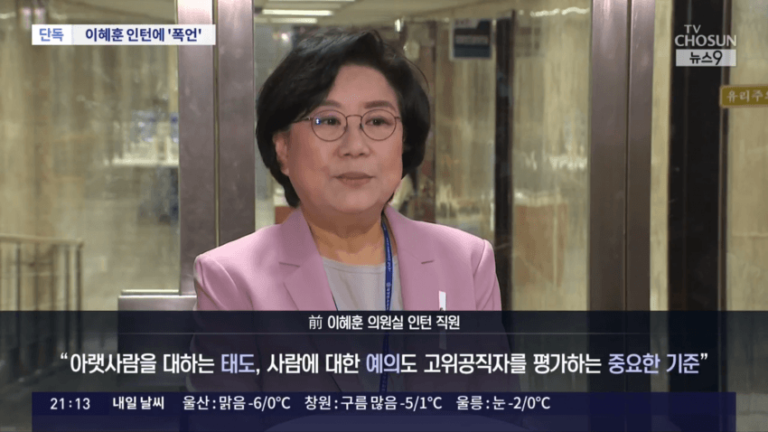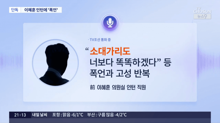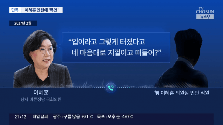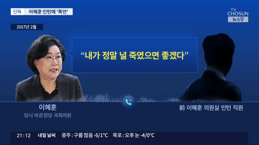 이혜훈 기획예산처 장관 지명자의 과거 보좌진 갑질 의혹이 새롭게 제기됐습니다. 국회의원 시절 인턴 직원을 상대로 소리 지르고, 폭언하는 녹취를 TV조선이 입수했는데, 해당 인턴은 이 일을 겪은지 보름 만에 그만뒀다고 합니다.