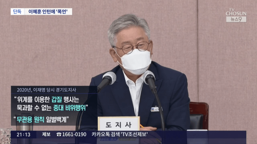2020년 경기지사였던 이재명 대통령은 팀원에게 수시로 폭언하는 등 문제를 일으킨 간부를 직위해제하며 "무관용 원칙 일벌백계"를 강조했습니다.