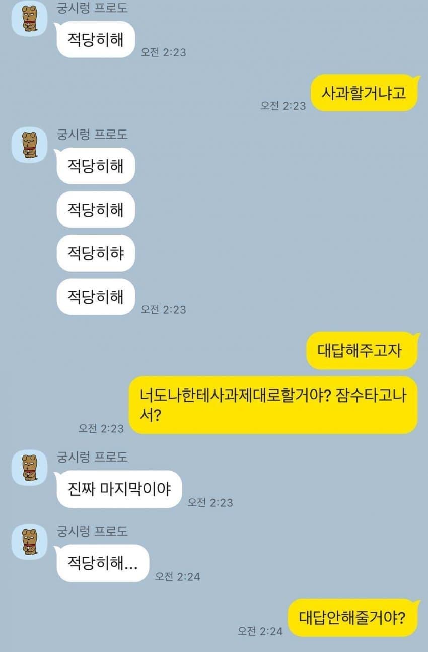 저 대화만보면 남자가 개빡쳤다는건데 잠수함이 아닌데 저건? ㅋㅋㅋ 저지랄하는데 왜 자꾸 건드는거냐? 꼭 이겨먹어야 하나?