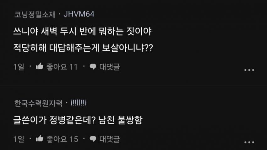 회피형 소인배+앞뒤없이 새벽바가지 긁는 여편네 환상조합이네 ㅋㅋㅋ