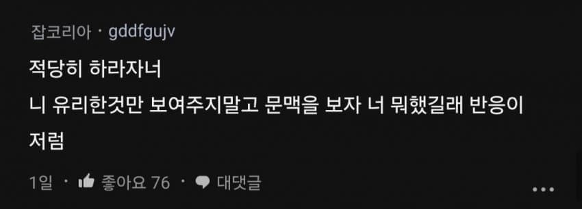 뭘 적당히하라는건지 위에꺼부터 까야지 ㅋㅋㅋㅋㅋㅋㅋㅋㅋ 지유리할것같은것만 올려놓고 물어보고 자빠졌노 하튼