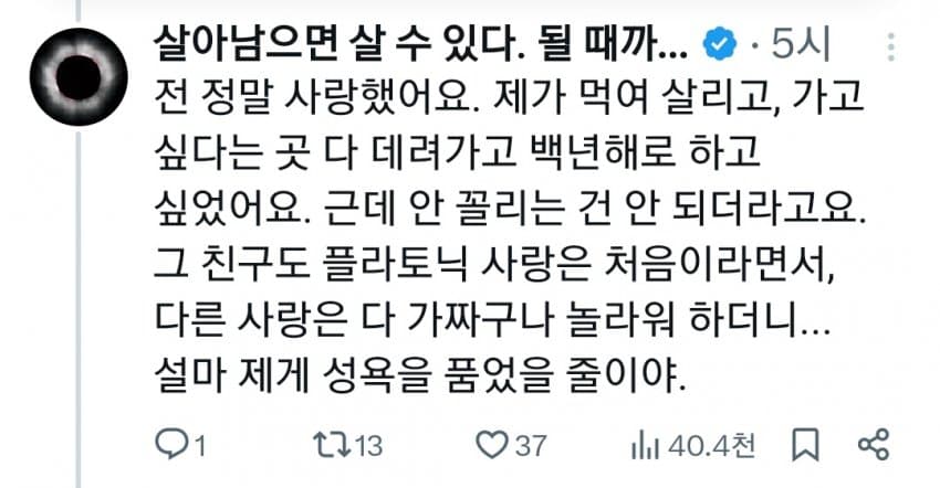 그냥 남친 없으니 남친 대용으로 갖고 놀았으면서 사랑 이 ㅈㄹ하고 있네..