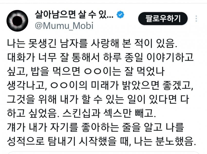저걸 좀 더 세련되게 표현 하자면 '키스가 불가능한 이성은 만나는게 아님' 이거다