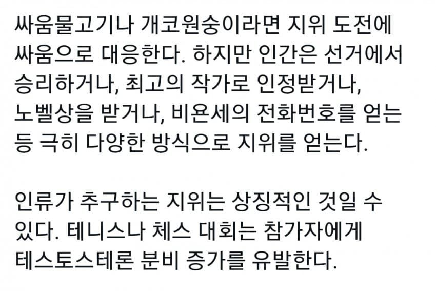 2. 남성호르몬은 사회적 서열 추락에 민감하게 만든다