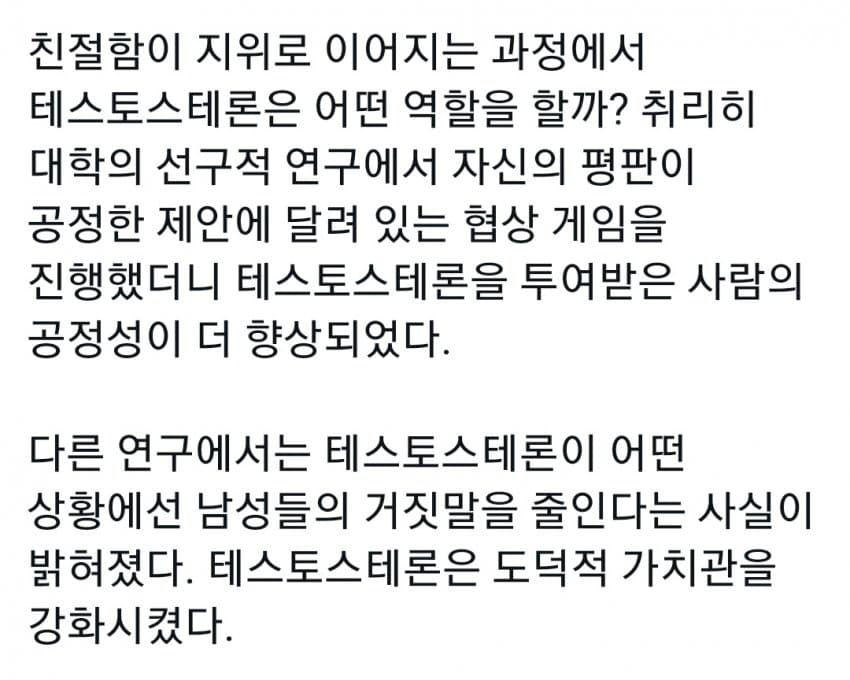 남성호르몬도 거기에 맞춰 도덕성, 공정성을 끌어올려