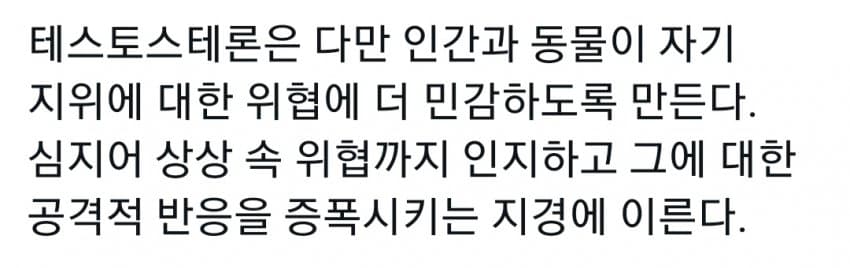 남성 호르몬은 '서열에 대한 위협'에 민감하게 만듦