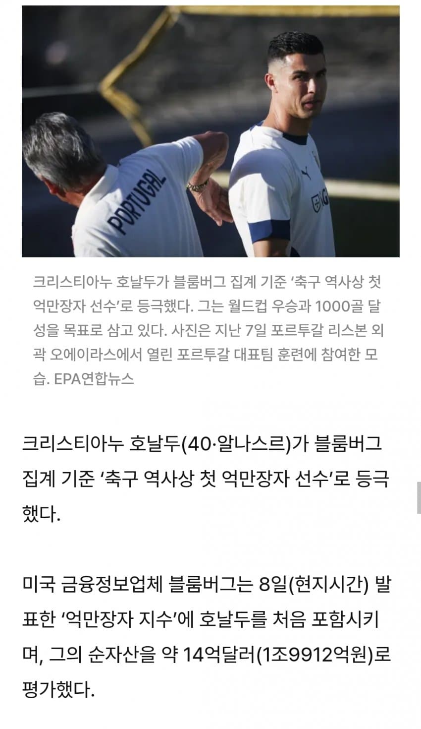 호날두는 단순 공놀이를 넘어 축구계 첫억만장자가 되어