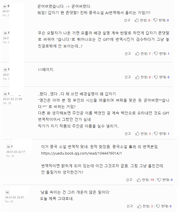 사람이 오타낼리가 없는 AI번역같은 이상한 말투변화때문에