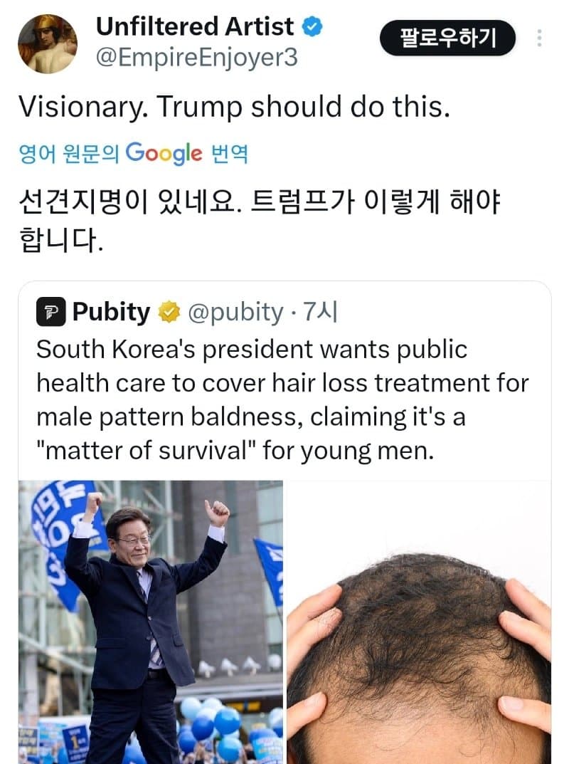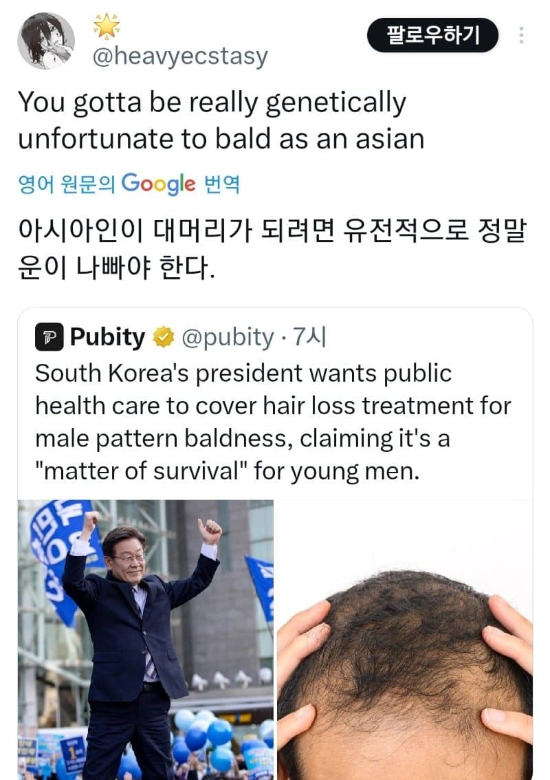 양남들 탈모는 ㄹㅇ 뭔가 클라스가 다르더라 뭐 한국처럼 좀 관리해서 버텨보자 이런 수준이 아님 ㅋㅋㅋㅋ