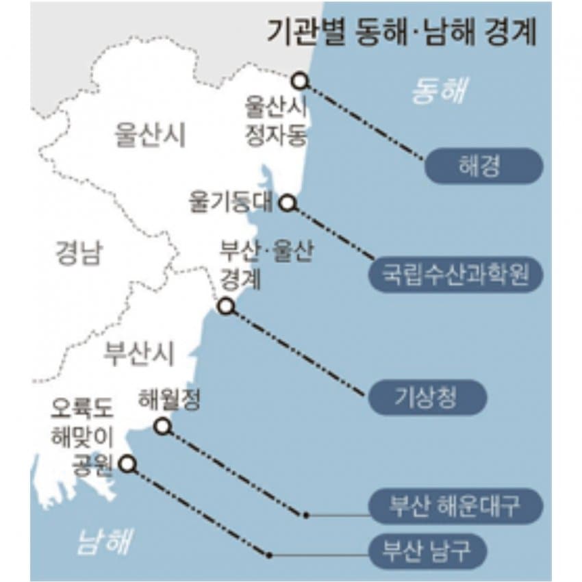기상청이 제일 마음에 드는데? 부산은 남해 울산은 동해로 구분하는게 제일 예쁠듯