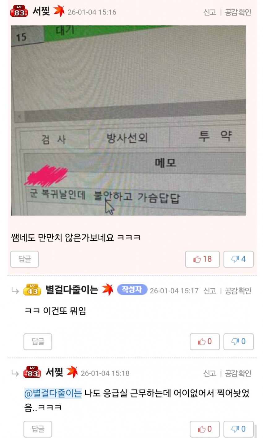 좃될가능성은 딱 하나, 실제 저 당사자인 환자가 저 차트가 나다 라는것을 입증하면서 직접 간호사에게 민형사 거는거뿐임(가능성 낮음)Emr로 환자신상을 특정해서 유출한게 아니라그냥 emr을 넷에 올렸다 수준이라 별로 좃될건없어보임해봐짜 인천 보건소에서 조사오고 벌금 내고 끝이라본다환자 신상이 없어서 ㅇㅇ저 간호사입장에서 최악의 결과는 짤리는거정