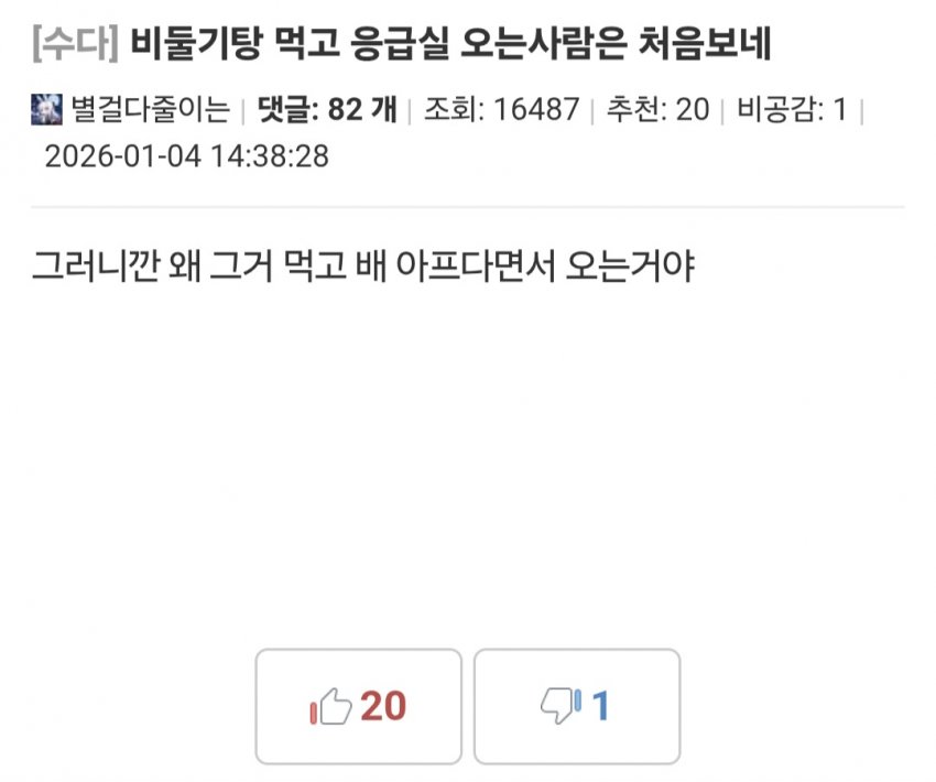 일반인 입장에서봐도 어이가 없긴하지 뭔 비둘기탕을 먹고 배가아프다고해서 오냐부대복귀하는날 가슴답답하다고 오는건 좀 한심하긴한데 이걸 조리돌림하는건 조금 심하긴했네