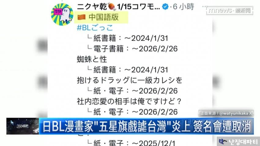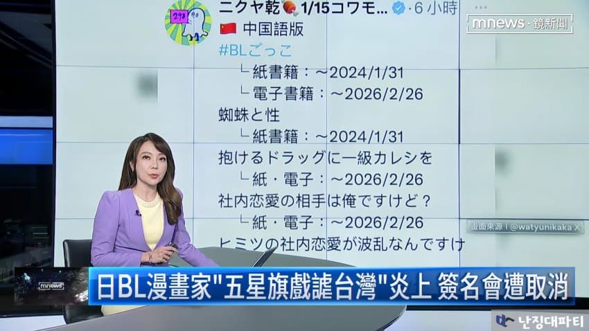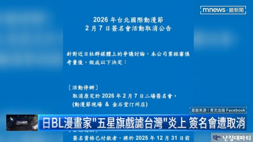 일본의 한 유명 만화가가 대만을 무시하고 중국의 일부로 취급하는 발언을 했다며 대만이 발칵 뒤집히는 일이 발생함