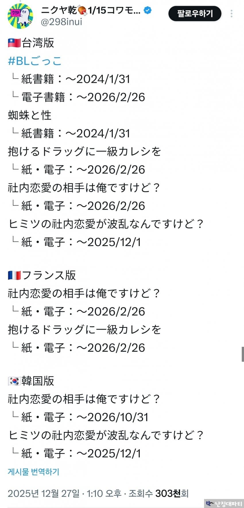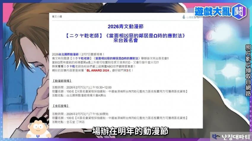 2026년 2월에는 대만의 국제 애니메이션 페스티벌에 작가가 초청돼서 사인회도 진행할 예정이었음