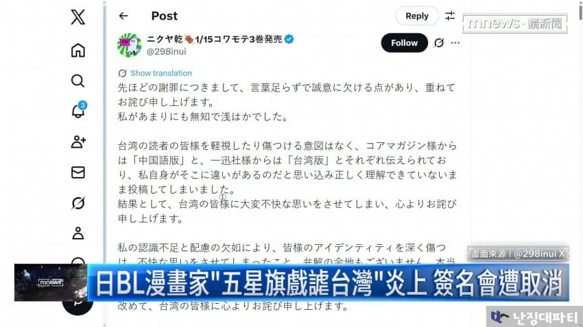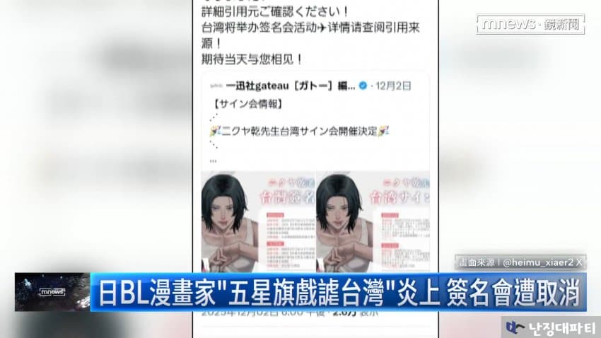 결국 대만 행사 주최 측에서 예정되어 있던 니쿠야 이누이의 사인회를 취소해버리는 지경까지 이르게 됨