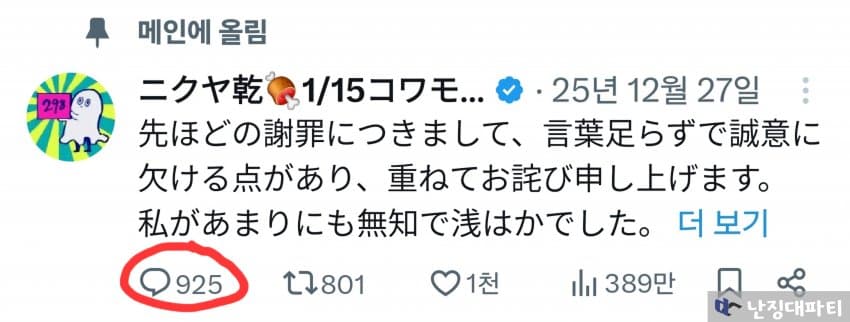 이렇게 섬짱깨들의 악플과 비난이 폭주하자 니쿠야는 해명글을 올림
