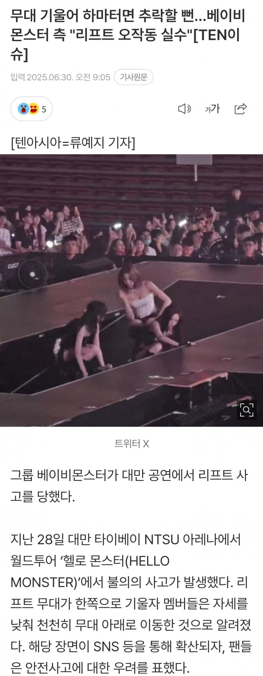 참고로 쟤들 6개월 전에도 타이베이에서 공연하다가 큰일 날뻔 했었음
