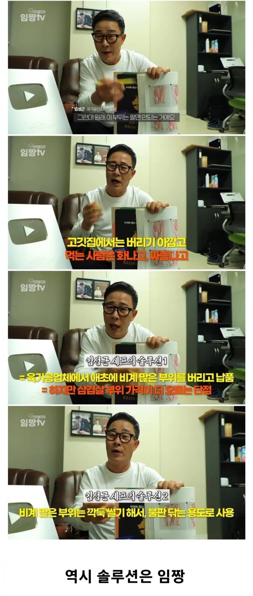 현실적으로 모든 삼겹살이 살7:비3으로 나올 수는 없는거고 임씨 말처럼 다 버리면 그만큼 그 외 삼겹살 가격에 얹을 수 밖에 없으니 나처럼 비계 좋아하는 사람들에게 비계삼겹살 뭐 이런식으로 명명해서 싸게 팔면 잘 사먹을 것 같은데