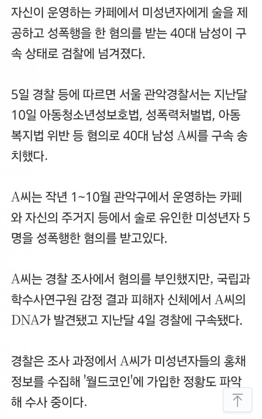 미성년자 5명 성폭행 40대 카페주인 홍채정보로 코인 가입도