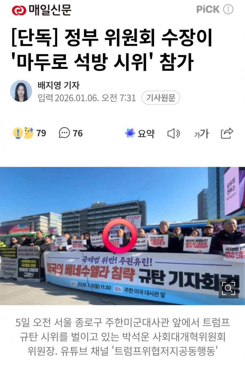 '전문시위꾼'이자 국무총리실 산하 사회대개혁위원회(사대개위) 수장인 박석운 위원장이 니콜라스 마두로 베네수엘라 대통령 석방 시위에도 참가한 것으로 나타났다. 정부 정책에 직접 관여하는 공식 기구 수장이 특정 외교 사안에 대해 정치적 입장을 공개적으로 밝힌 것이다.