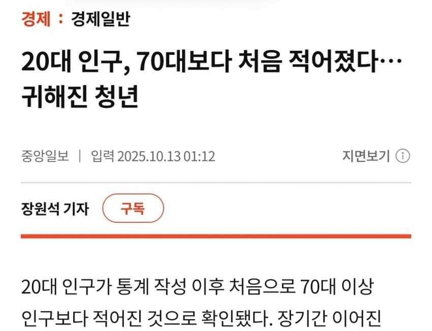 20대보다 70대가 많은 나라 ㄷㄷ