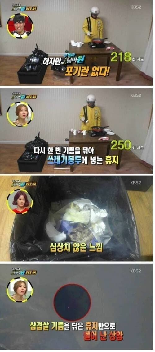 그래서 왜 불이붙는거임? 찾아보니까 돼지기름 발연점은 180도라는데 저 쓰봉이 그만치뜨겁다고?