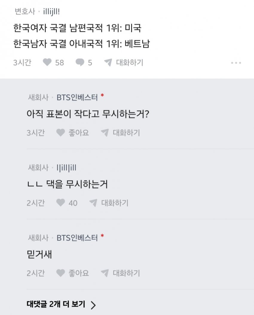 어차피 선진국 여자랑 국제결혼 할애들 대다수는 중산층이상 될 애들인데 저런 찐따글 쓰지말고 그냥 묵묵히 쳐해라