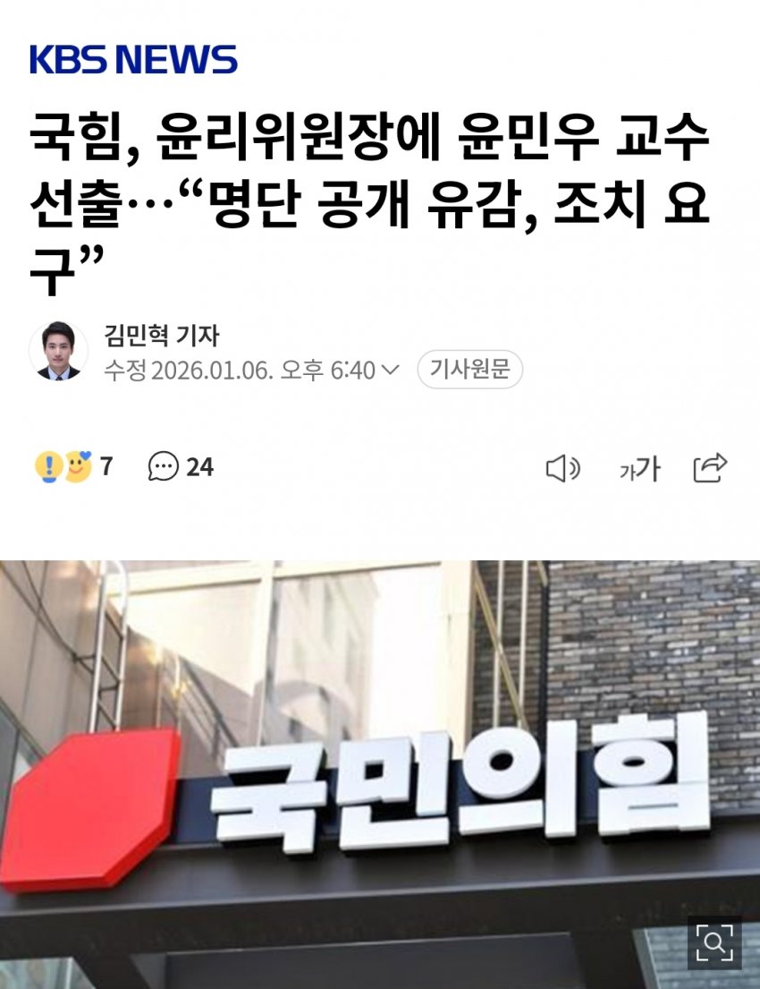 신임 윤리위원장, 지도부에 명단 유출자 조치 요구 ㅋㅋ