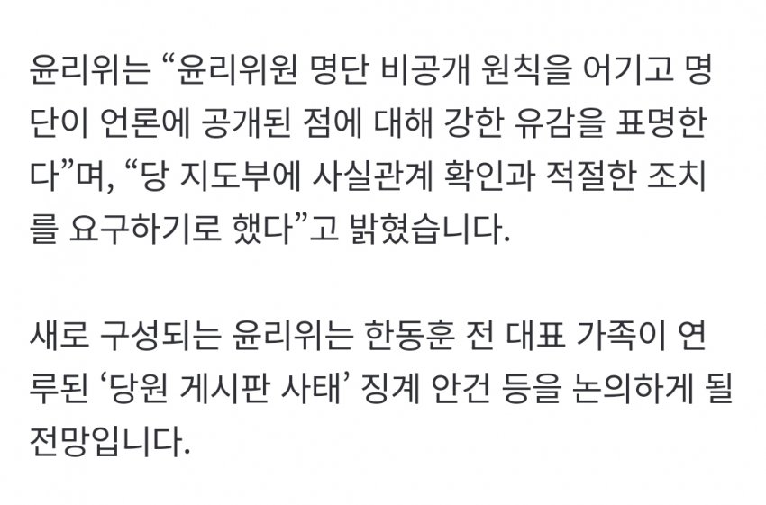 관리책임 어쩌구하면서 징계한다는데 그거 법원가면 박살남. 결론은 한동훈 복귀쌉가능. 글고 징계도 못해 위원들 계속 빠져나가잖아. 동훈이 영향력보고 쫄아가지고