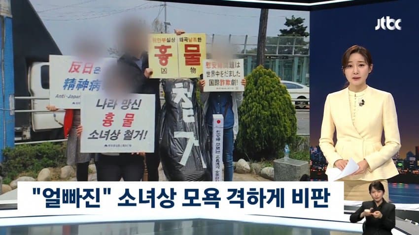 분명히 한국에서 시위를 하고 있는데도 꼭 쪽발이들 보라는 듯이 일본어로 시위하는 기묘한 모습임