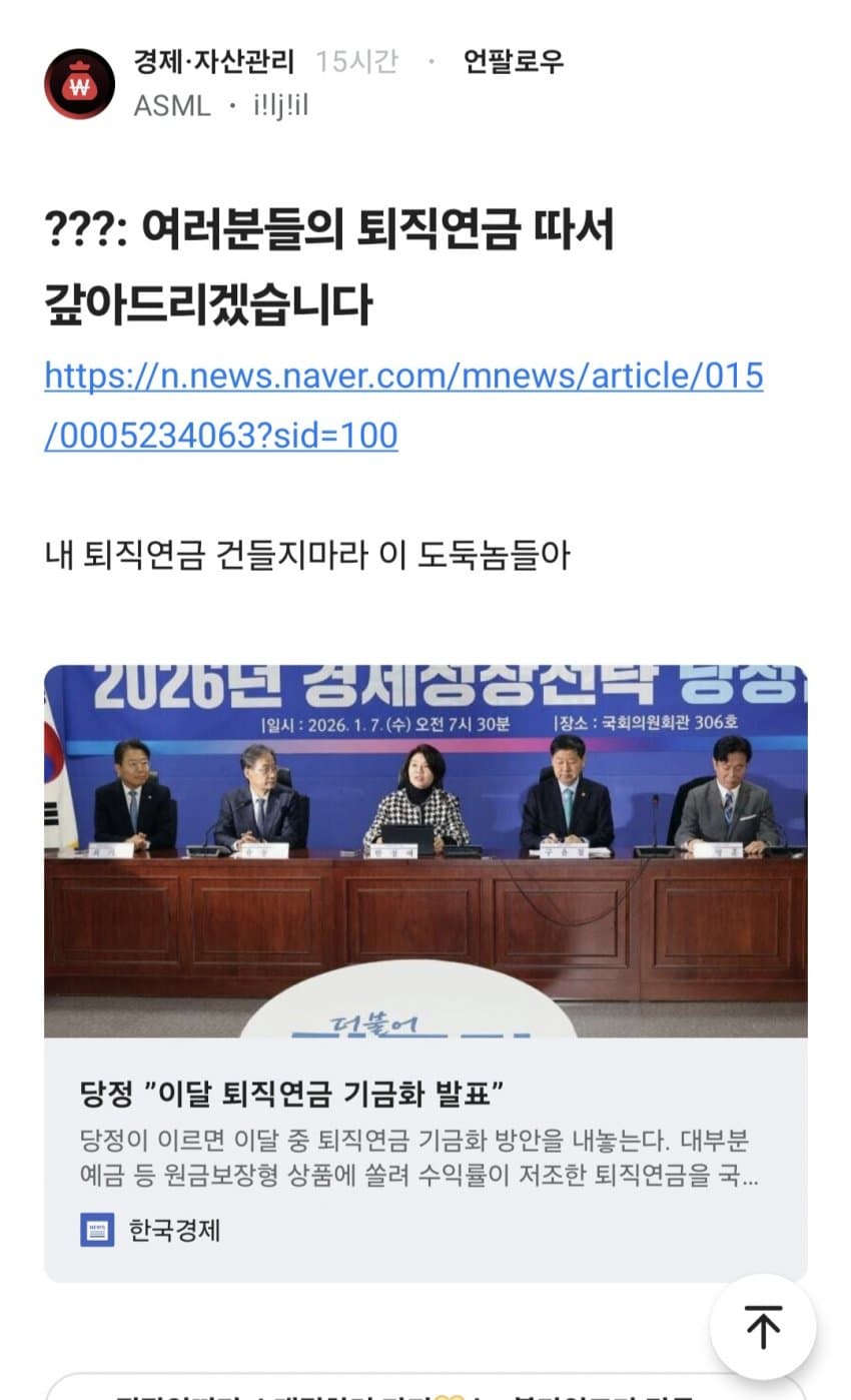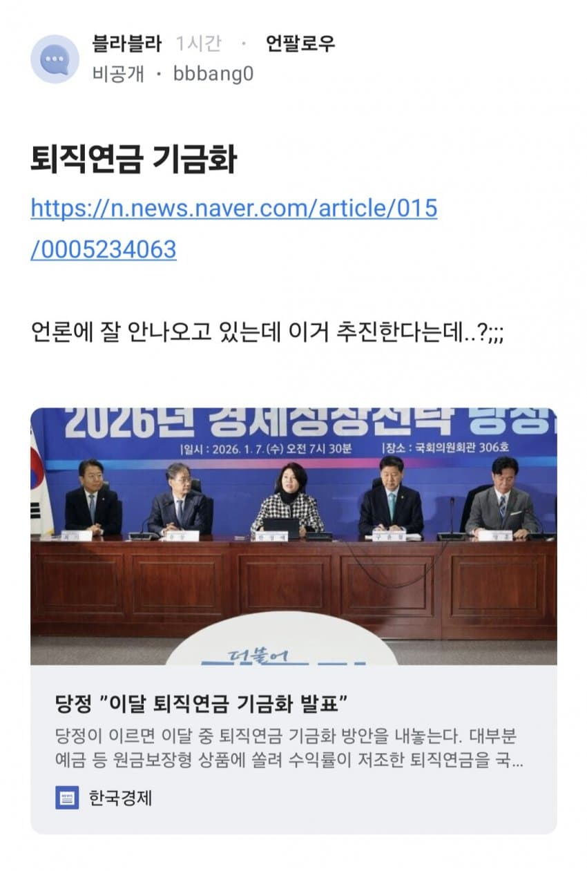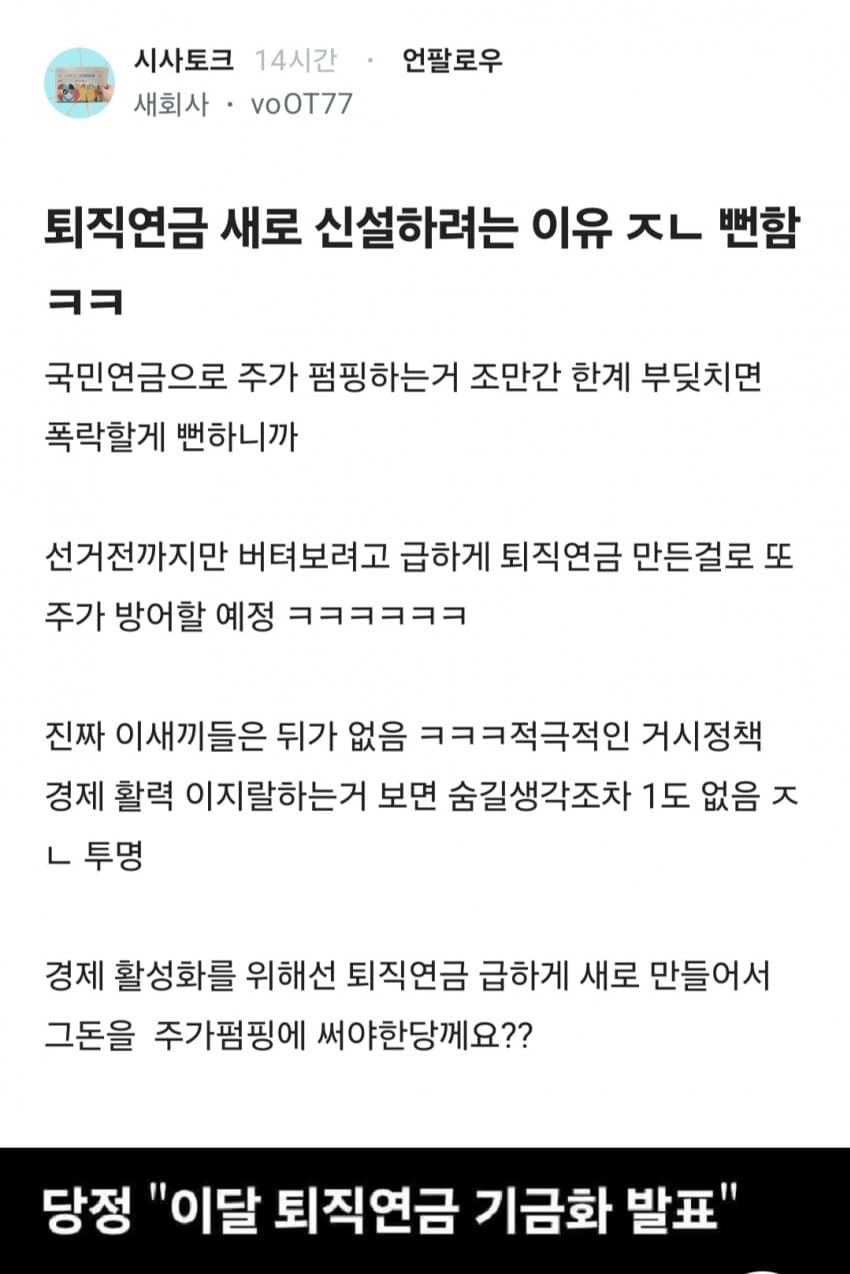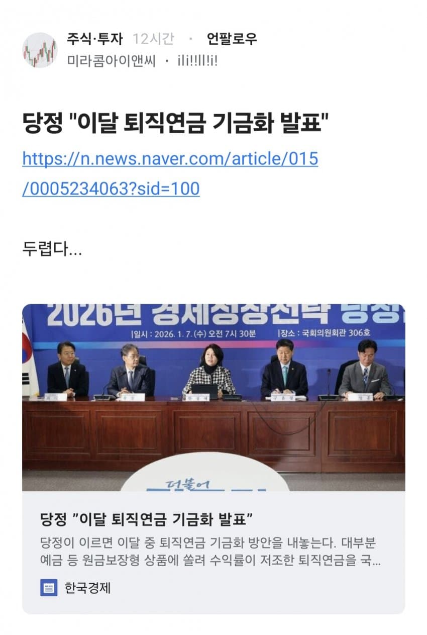 결국 이번달 내로 퇴직연금 기금화 발표 하겠다는 민주당...