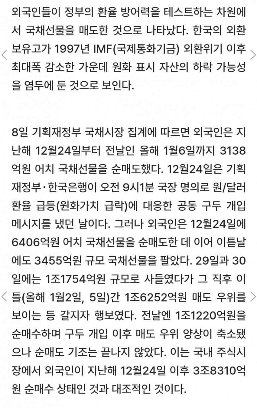 12월에 금융기관들 외화 예치금 쌓는 시긴데 저정도 줄은건 imf랑 2008년 금융위기때 말곤 없다 게이야